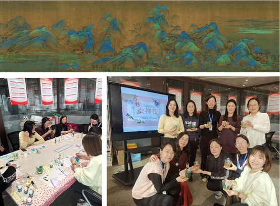 本次彩繪玻璃創意手工活動以中國十大傳世名畫之一《千里江山圖》為圖樣,精選配有金色線條的錘目紋玻璃杯,通透、明亮、色彩豐富,凸顯了高貴與典雅。使用專業玻璃顏料增色,用靈巧的雙手,讓杯子擁有了藝術的美感。在老師的精心指導下,女工們順利完成了一個個手繪作品。大家紛紛表示,本次活動不僅豐富了精神文化生活,而且激發了對藝術創作的熱情,更加深了對傳統文化的了解與熱愛。