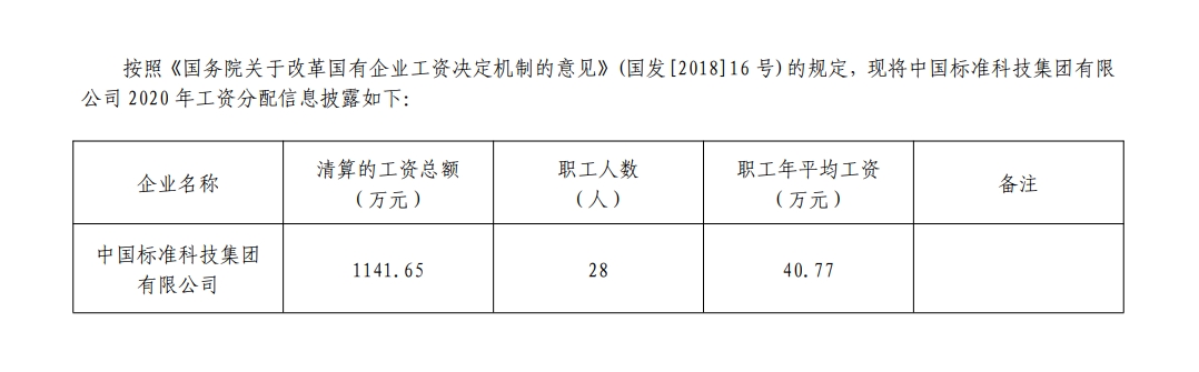 2020年中國標準科技集團有限公司工資分配信息披露