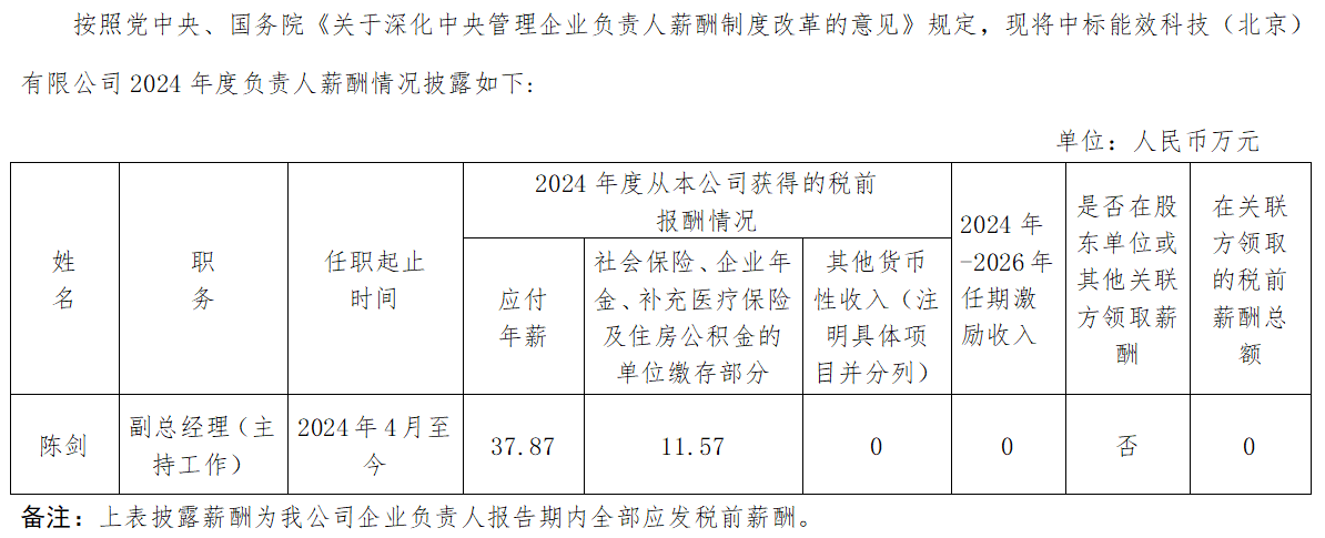 中標(biāo)能效科技(北京)有限公司企業(yè)負(fù)責(zé)人2024年度薪酬情況