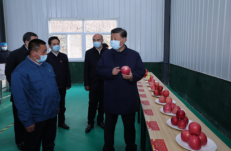 10月26日至28日,中共中央總書記、國家主席、中央軍委主席習近平在陜西省延安市、河南省安陽市考察。這是26日下午,習近平在延安市安塞區高橋鎮南溝村蘋果洗選車間,察看當地種植的蘋果。新華社記者 鞠鵬 攝