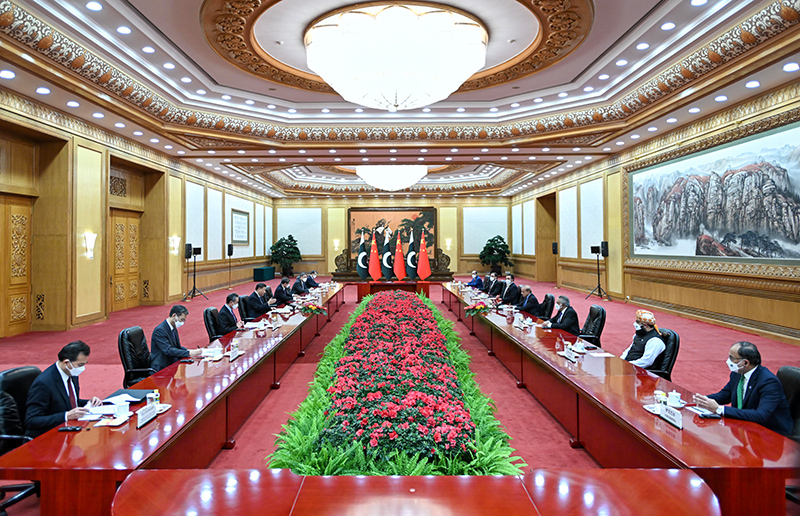 11月2日上午,國家主席習近平在北京人民大會堂會見來華進行正式訪問的巴基斯坦總理夏巴茲。新華社記者 姚大偉 攝
