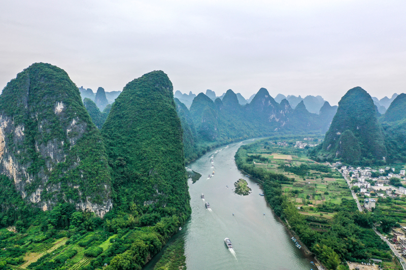 這是2021年4月25日拍攝的漓江廣西陽朔段(無人機照片)。新華社記者 曹祎銘 攝