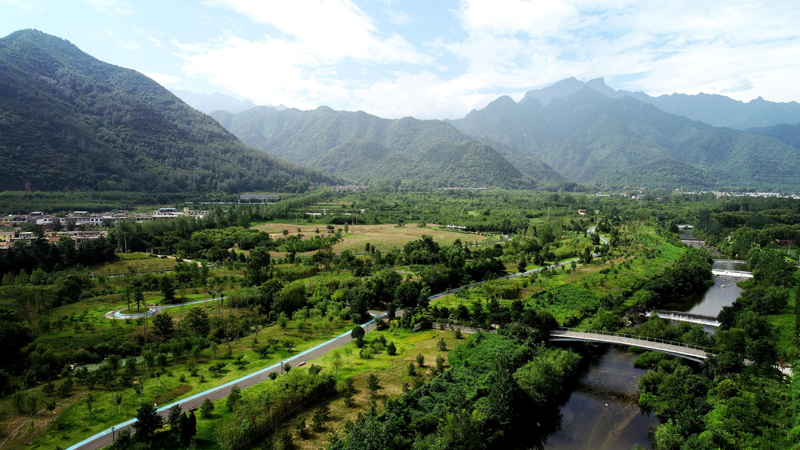 這是2019年7月26日拍攝的陜西省西安市長安區秦嶺違建別墅拆除后建設的秦嶺和諧森林公園(無人機照片)。新華社記者 劉瀟 攝